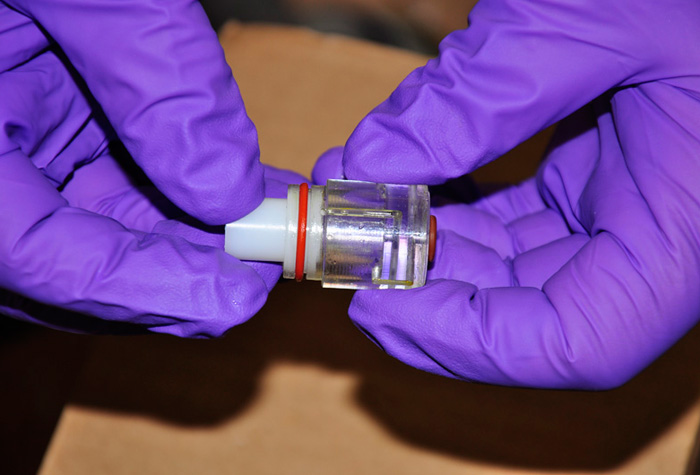 One of the problems SID-ISMS had involved the poppet, a small white cylinder made of hard polyethylene. The end of the poppet was machined to be very flat, so that it would form a good seal with the bottom of the chamber. But under the intense pressure at 3,500 meters depth, the end of the poppet bent just enough to allow the part to leak. The researchers discovered a quick and easy fix: They simply turned the poppet around. The other end has a narrow rim—and under high pressure, that rim forms a good seal.