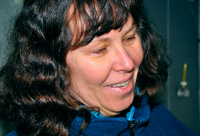 Let the celebration begin! Dr. Joan Bernhard reacts to seeing the bacterial mat on the pushcore from Discovery Basin’s halocline.