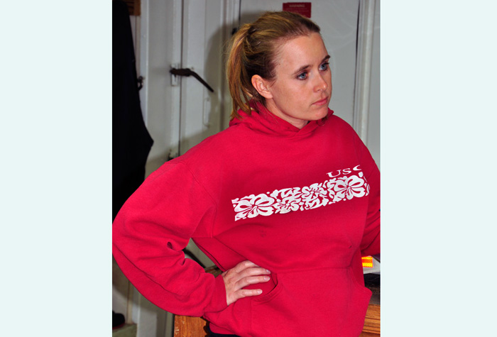 During last week’s rescue of the 93 men aboard a foundering fishing boat, SSSG Catie Graver kept the Science party informed about events on the deck outside.