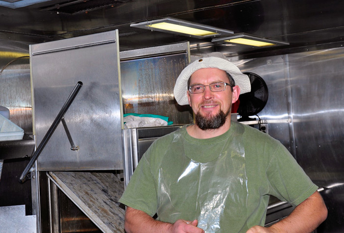 Mess attendant Aleksandr Rossinskiy sends us on our way with a smile and words of encouragement.