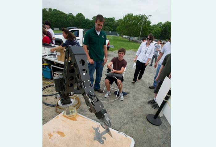 In June of 2011, pilot Ben Tradd demonstrated how the manipulator arms of Jason work. When he moves the joints of the control arm, the manipulator arm makes exactly those same movements.