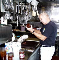 Senior Cook Ed Miller starts cooking at five in the morning and doesnt stop until 1800 hours (thats 6pm).