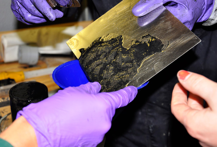 The precious bacterial mat is deposited in a sample bottle. Joan and her colleagues will examine it with light and microscopes to look for protists, some of which may be species that are new to science.