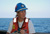 Shipboard Scientific Services Group technician (SSSG) Allison Heater after the successful deployment of an instrument. Hardhats and safety work vests must be worn by all those involved in the deployment or recovery of an instrument. Photo by Thorsten Stoeck, Technische Universität Kaiserslautern.