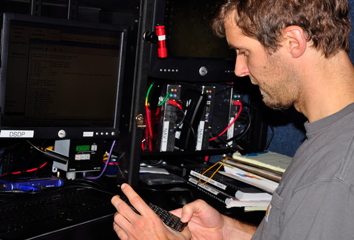 Navigator Cathy Offinger handles communications for the Jason team and also for the group at WHOI that handles Sentry, an autonomous underwater vehicle.