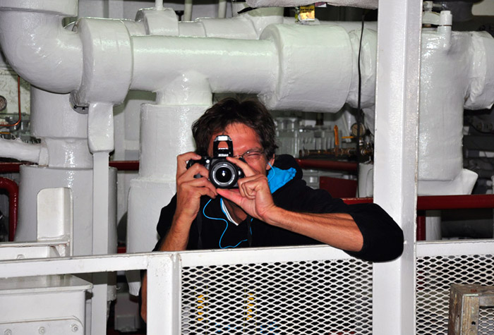 Scientist/photographer Thorsten Stoeck snaps a photo in the ship’s engine room.