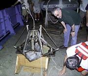 | Jim inspects the grab sampler as it is being prepared for a quick trip down to the bottom of the ocean. |