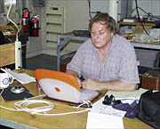 | Hans analyzing the magnetometer data collected by Alvin in the Hydrolab on RV Atlantis. |